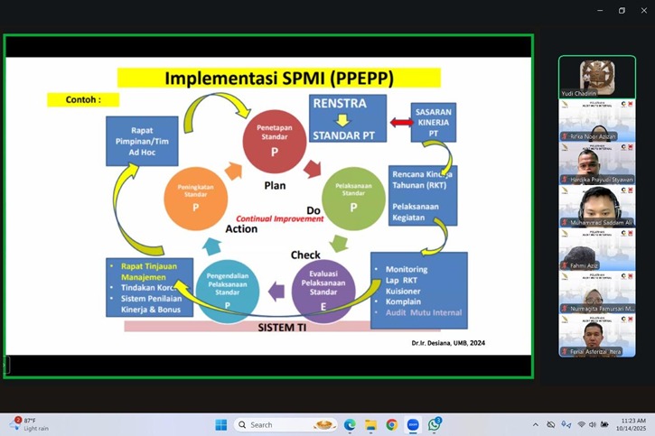Proses sertifikasi ini diselenggarakan oleh lembaga sertifikasi profesional Quantum HRM Internasional dan berlangsung selama empat hari secara daring pada 14–17 Oktober 2025. Sementara itu, pelaksanaan uji kompetensi Skema Auditor Mutu Internal Perguruan Tinggi SNI ISO/IEC 17024:2012 digelar secara luring di Ruang E108 Itera