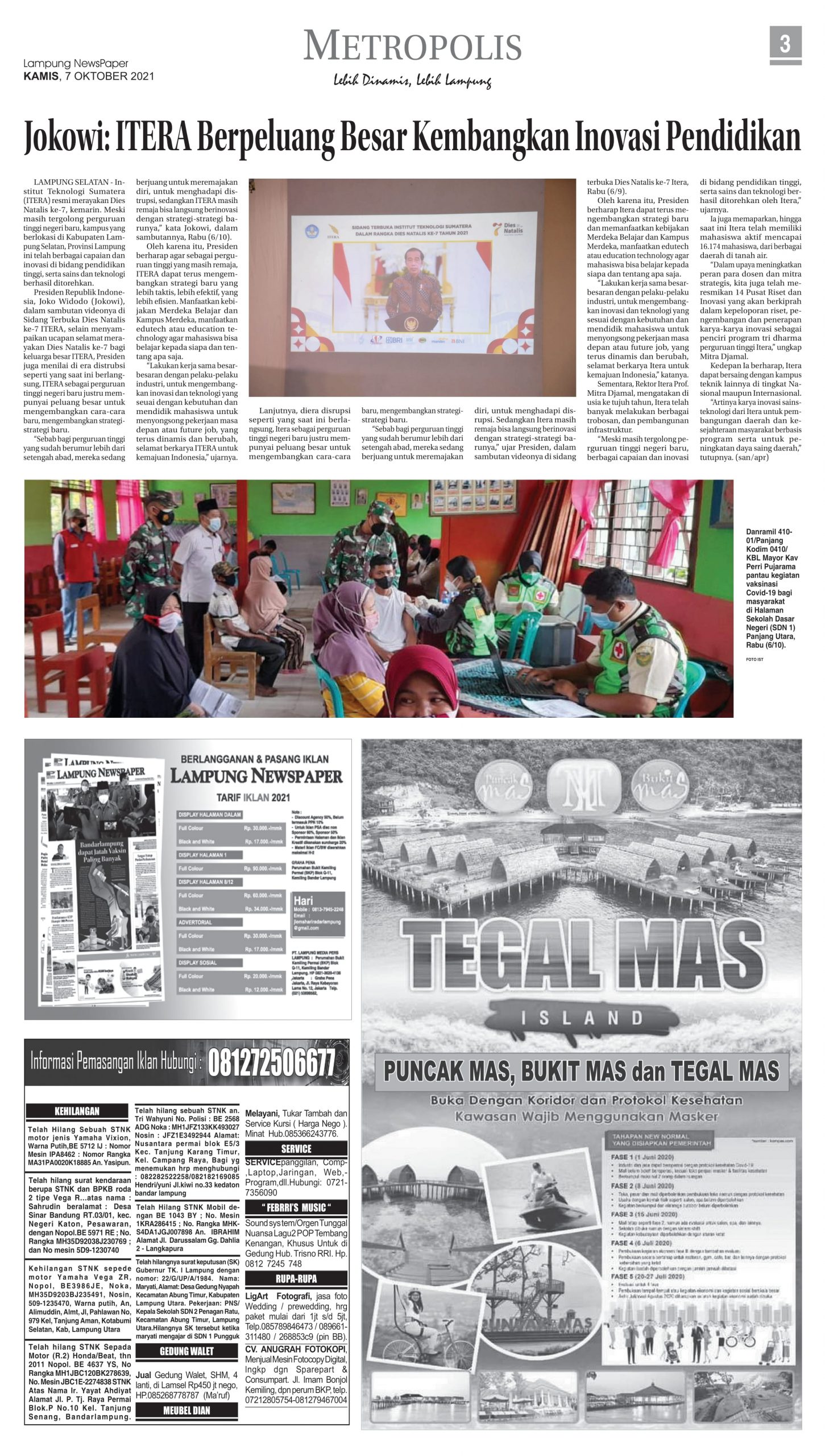 lampung.poskota.co.id- Presiden Jokowi Mengatakan ITERA Berpeluang Besar untuk Maju