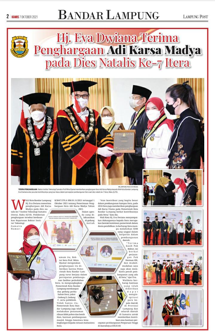 Transsumatera.id - Eva Dwiana Dianugerahi Penghargaan Adi Karsa Madya Oleh ITERA