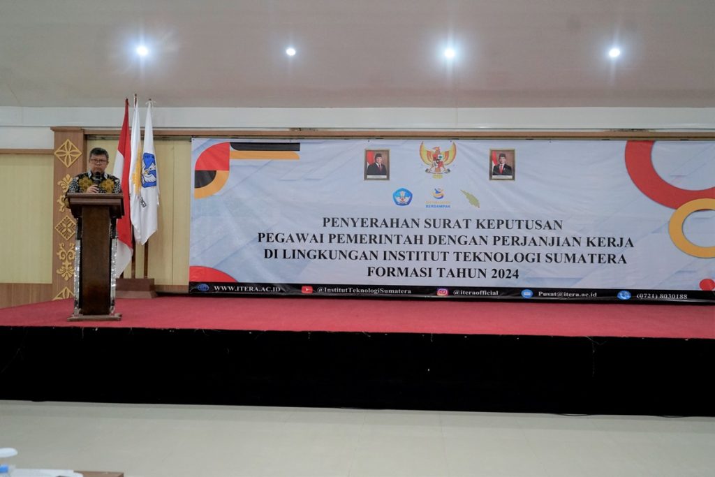Rektor Itera yang diwakili Wakil Rektor Bidang Akademik dan Kemahasiswaan, Prof. Khairurrijal, menyampaikan selamat kepada para pegawai yang resmi diangkat sebagai PPPK dan kini berstatus Aparatur Sipil Negara (ASN). Ia berharap seluruh pegawai dapat menjalankan kewajiban dengan baik sesuai ketentuan yang berlaku, guna mendukung terwujudnya visi dan misi Itera.