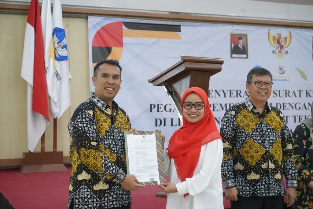 ITERA NEWS – Institut Teknologi Sumatera (Itera) menyerahkan 268 Surat Keputusan (SK) Pengangkatan Pegawai Pemerintah dengan Perjanjian Kerja (PPPK) di Aula Gedung Kuliah Umum 1 Itera, Selasa, 7 Oktober 2025. Dari jumlah tersebut, sebanyak 37 orang merupakan dosen dan 231 lainnya tenaga kependidikan.