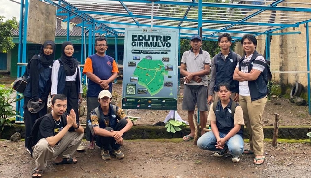 Ketua tim pengabdian, Agung Mahadi Putra P., M.Sc., menjelaskan bahwa pemetaan infografis edutrip dirancang tidak hanya sebagai sarana promosi, tetapi juga sebagai alat perencanaan desa. “Peta ini menyajikan potensi Desa Girimulyo secara terstruktur, sehingga dapat dimanfaatkan untuk pengembangan desa wisata agroforestri yang berkelanjutan dan berbasis edukasi,” ujarnya.