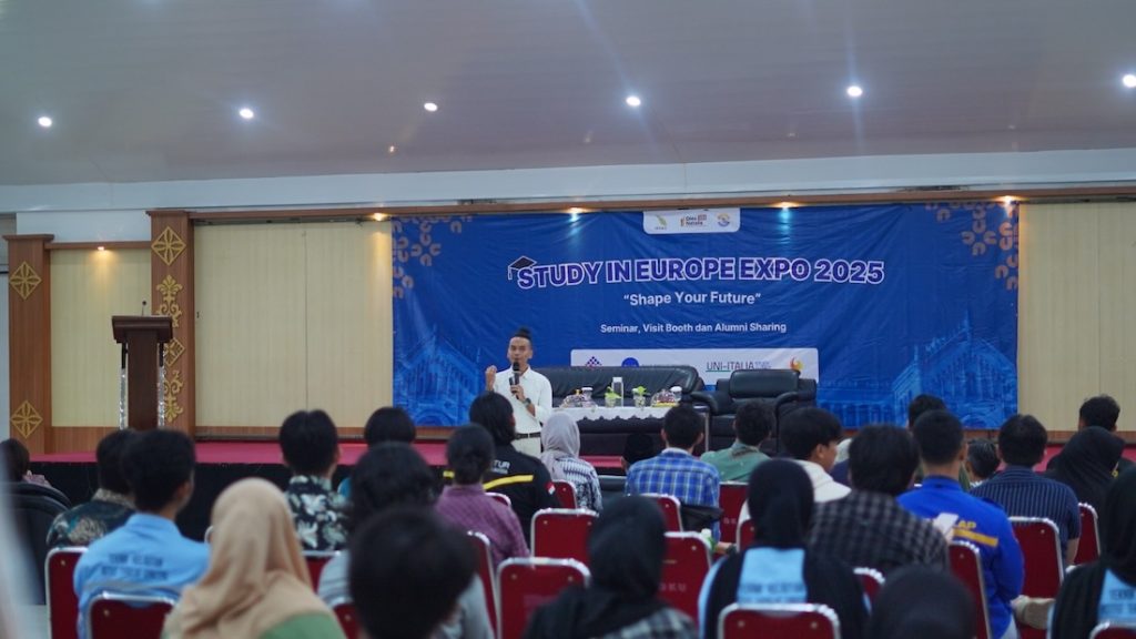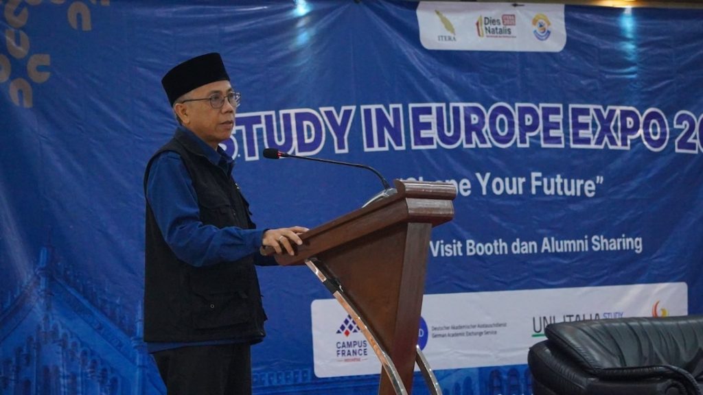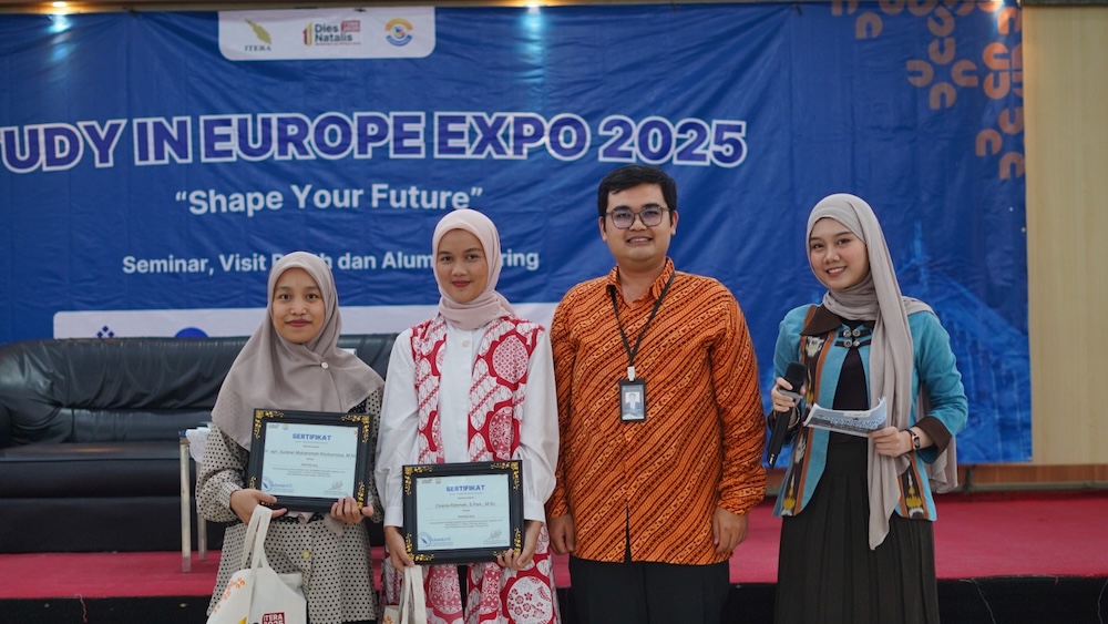 ITERA NEWS – Sebagai rangkaian Dies Natalis ke-11, Institut Teknologi Sumatera (Itera) menggelar kegiatan bertajuk Study in Europe Expo 2025 di Aula Gedung Kuliah Umum (GKU) 1, Kamis, 2 Oktober 2025. Kegiatan ini menghadirkan lima narasumber yang membagikan pengalaman dan peluang studi lanjut di negara-negara Eropa, mulai dari Italia, Jerman, Prancis, Belanda, hingga Skotlandia.