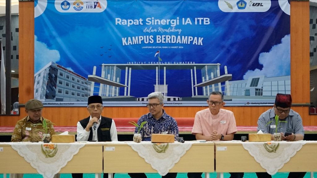 ITERA NEWS – Institut Teknologi Sumatera (Itera) menjadi tuan rumah Rapat Sinergi Ikatan Alumni Institut Teknologi Bandung (IA ITB), yang berlangsung di Aula Gedung Kuliah Umum 2 Itera, Rabu, 11 Maret 2026. Dalam kegiatan tersebut dirancang berbagai program kolaborasi antara Itera dan IA ITB Lampung dalam mendukung program Kampus Berdampak.