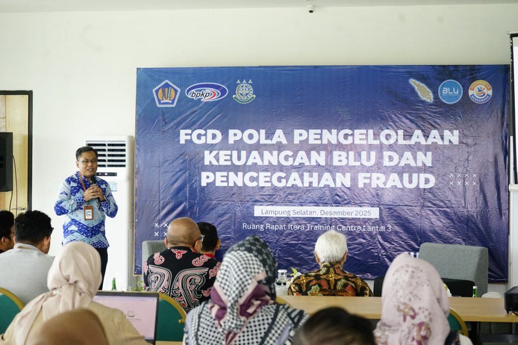 ITERA NEWS – Perkuat transparansi dan akuntabilitas pengelolaan keuangan, Institut Teknologi Sumatera (Itera) melalui Tim Kerja BMN, menggelar diskusi kelompok terpumpun dengan tema Pola Pengelolaan Keuangan Badan Layanan Umum (BLU) dan Pencegahan Fraud. Kegiatan yang dilaksanakan, Kamis, 11 Desember 2025 di Ruang Rapat Gedung Itera Training Center, dibuka langsung oleh Rektor Itera Prof. Dr. I Nyoman Pugeg Aryanta, yang menekankan pentingnya integritas dan akuntabilitas dalam mengelola pendanaan institusi.
