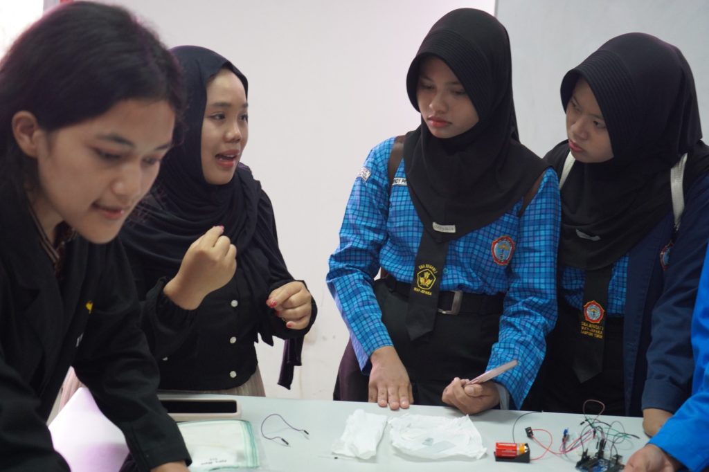 Dalam kegiatan tersebut, tim dosen dan mahasiswa memperkenalkan material transparan konduktif melalui demonstrasi eksperimen penyalaan lampu LED menggunakan kaca Indium Tin Oxide (ITO). Eksperimen itu menunjukkan bahwa material yang tampak transparan seperti kaca ternyata dapat menghantarkan listrik dan dimanfaatkan sebagai bagian dari rangkaian elektronik sederhana.