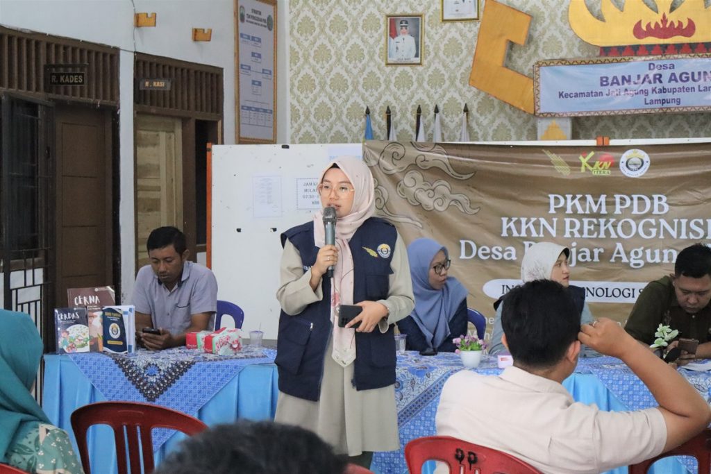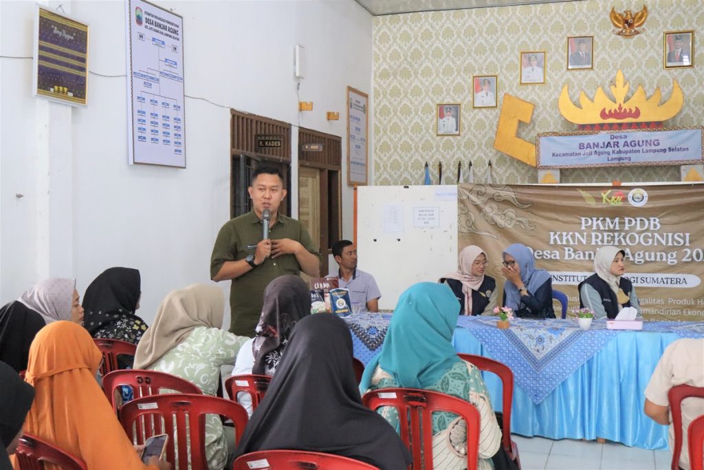 Upaya mendorong produk karya mahasiswa KKN Rekognisi Itera dapat dipasarkan secara luas tersebut dibahas dalam kegiatan workshop bertajuk “Implementasi Business Plan dan Legalitas Produk Hasil KKN untuk Mendorong Kemandirian Ekonomi Masyarakat Pasca-KKN” di Desa Banjar Agung, Sabtu, 25 Oktober 2025.
